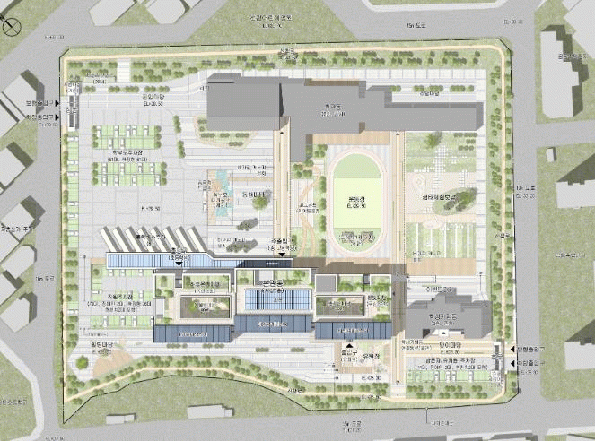 특히 건물 사이에 작은 정원을 조성해 경관과 휴식공간으로서 기능을 할 수 있도록 하고, 주차영역과 학생활동 공간을 합리적으로 나눠 호평을 받았다.
