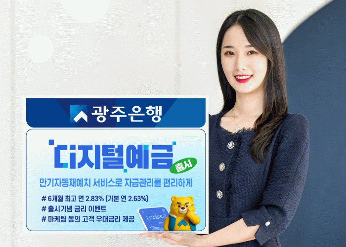 광주은행 변미경 디지털본부 부행장은 “‘디지털예금’은 만기자동재예치와 분할해지 기능을 통해 고객의 자금관리 부담을 줄인 실속형 금융상품”이라며, “앞으로도 고객 니즈를 반영한 디지털 금융상품을 지속적으로 선보여 편의성과 혜택을 강화해 나가겠다”고 말했다.