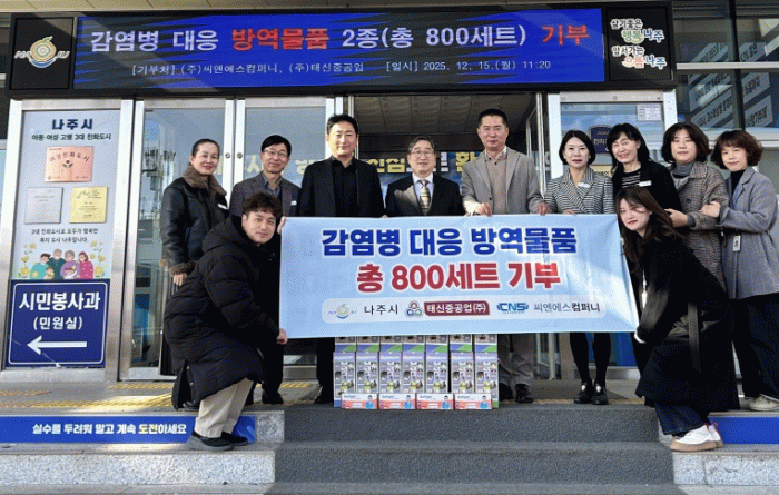 나주시는 15일 ㈜씨엔에스컴퍼니와 ㈜태신중공업이 감염병 확산 방지를 위해 방역물품 800세트를 기부했다고 밝혔다.