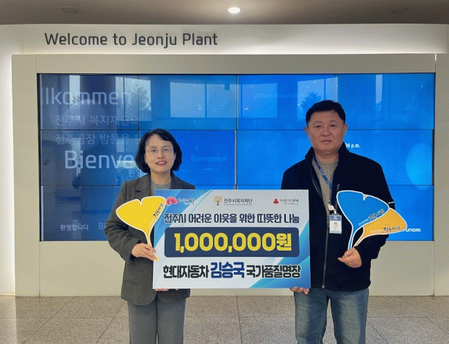 윤방섭 전주시복지재단 이사장은 “지역사회 발전을 위해 의미 있는 나눔을 이어주신 김승국 명장님께 깊이 감사드린다”면서 “전달받은 성금은 취약계층 지원을 위해 소중히 사용하겠다”고 말했다.