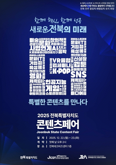 진흥원 김성규 원장은 “이번 콘텐츠페어를 통해 전북의 창작자와 콘텐츠 기업들이 이뤄낸 성과와 향후 비전을 도민들과 공유하고자 한다”며 “함께 혁신, 함께 성공이라는 가치를 바탕으로 창작 및 기업지원 정책과 산업 네트워크를 더욱 강화해 전북 콘텐츠산업의 지속적인 성장을 지원하겠다”고 밝혔다.