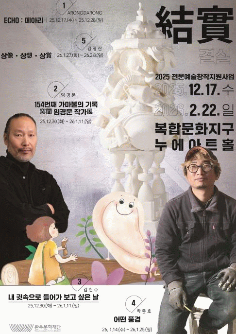 (재)완주문화재단 정철우 상임이사는 “이번 전시 '결실'은 지역 예술인들이 한 해 동안 쌓아온 창작의 성과를 시민과 함께 나누는 자리”라며, “앞으로도 예술인의 지속적인 창작활동이 지역 문화로 확산될 수 있도록 다양한 지원과 공유의 장을 이어가겠다”라고 밝혔다.