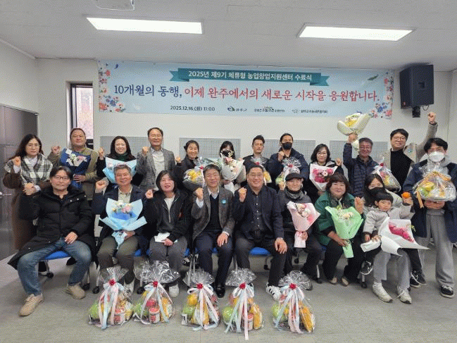 지난 16일 완주군은 귀농귀촌 게스트하우스 공감마당에서 제9기 체류형 농업창업지원센터 입교생 수료식을 열었다.