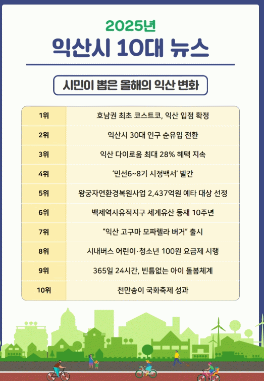 익산시는 18일 시민 참여로 선정한 '2025년 익산 10대 뉴스'를 발표했다.