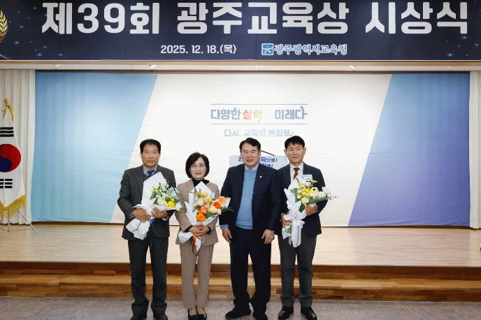 이정선 교육감은 이날 이날 본청 대회의실에서 열린 ‘제39회 광주교육상 시상식’에서 이들 교직원에 대해 상패와 부상을 수여하고 격려했다.