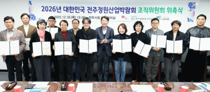 시는 18일 시청 3층 회의실에서 ‘2026년 대한민국 전주정원산업박람회 조직위원회 위촉식 및 1차 회의’를 열고 본격적인 박람회 준비에 착수했다.