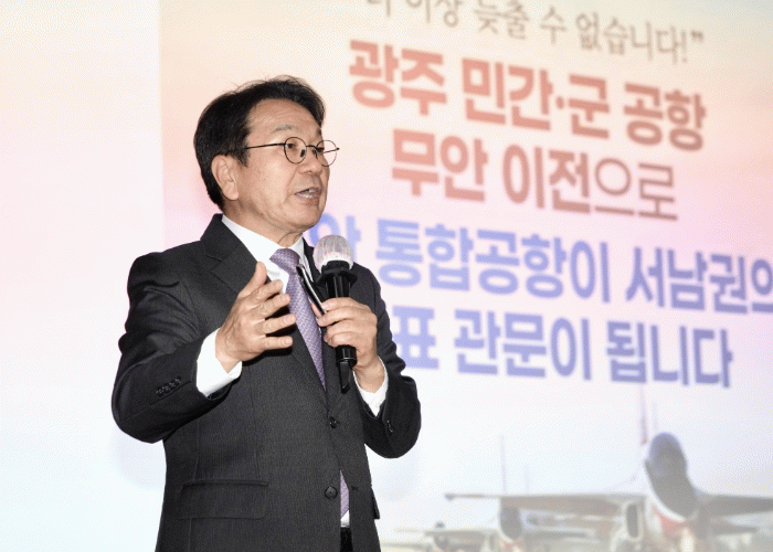 강 시장은 이어 “무안 통합이전 로드맵은 단순한 공항 이전 계획이 아니다”며 “그동안 해외에 가기 위해 인천공항까지 가는 불편을 감수해야 했던 서남권 주민들의 불편을 덜고, 지역의 첨단산업과 물류경쟁력을 높일 관문공항을 여는 것인 만큼 더 부강한 광주·전남을 위해 지혜를 모아주길 바란다”고 말했다.