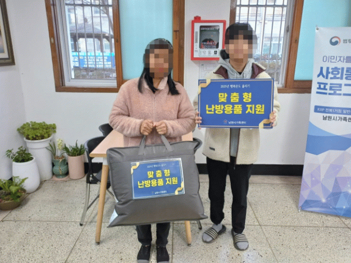 가족센터는 가구별 난방 상황과 필요 물품을 조사하여 ▲이불세트 ▲카본매트 ▲난방유 ▲도시가스비 중 1종을 선택 지원하는 맞춤형 방식을 적용했다.