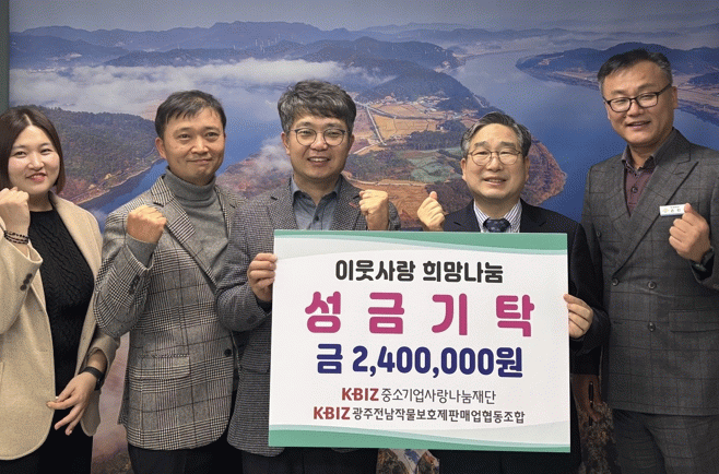 이날 기탁식에는 강상구 부시장과 광주전남작물보호제판매업협동조합 신명준 이사장을 비롯한 조합 관계자들이 참석했다.
