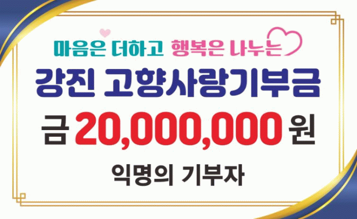 해당 익명의 기부자는 강진군과 군민을 위해 기부금을 잘 써달라며 그 이상의 내용 언급을 정중하게 거절해 잔잔한 울림을 더했다.