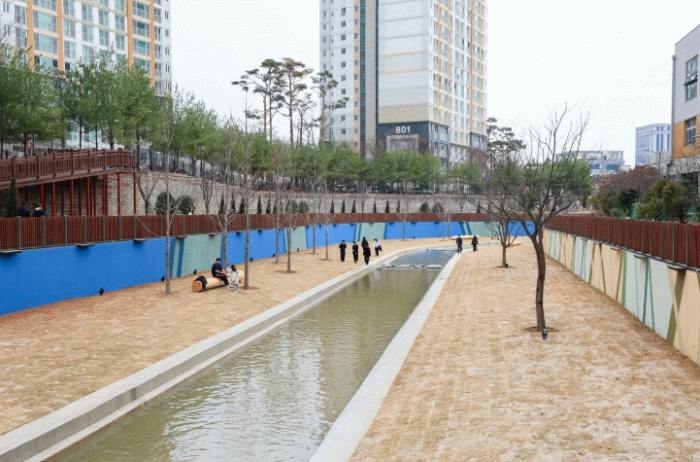또한 주거지역과 상업지역을 잇는 산책 동선과 휴식 공간을 조성해 낮에는 여유로운 산책 공간으로, 야간에는 조명이 더해진 안전한 수변 공간으로 탈바꿈했다.