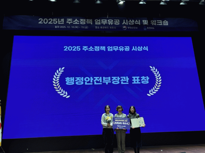 시 관계자는 “정확한 주소는 시민의 안전과 편의를 보장하는 기본적인 공공 인프라”라며 “이번 수상을 계기로 주소정책의 품질을 더욱 강화해 시민 중심 행정서비스를 실현해 나가겠다”고 밝혔다.