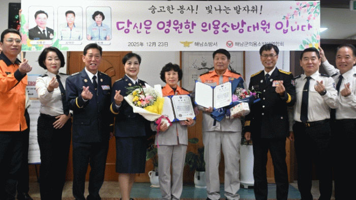 해남소방서장은 “의용소방대원으로서 보여주신 책임감과 봉사정신은 지역사회 안전의 든든한 버팀목이었다.”며“그동안의 헌신에 깊이 감사드리며, 앞으로의 새로운 출발을 진심으로 응원한다”고 말했다.