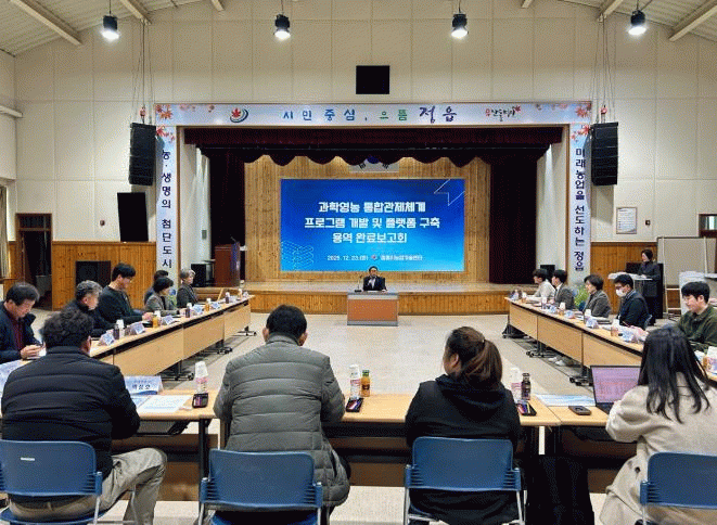 정읍시농업기술센터는 지난 23일 제2청사 대강당에서 ‘과학영농 통합관제체계 구축사업 완료보고회’를 개최했다.
