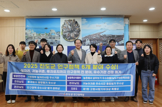 진도군이 전라남도 ‘2025년 인구정책 우수 시군 평가’에서 장려상을 받았다.