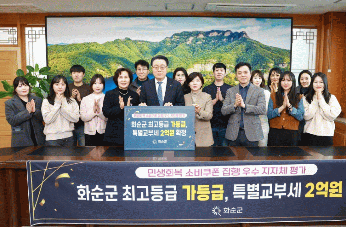 한편, 화순군은 행정안전부 주관 ‘2025년 지방물가 안정관리 평가’에서도 ‘나등급’을 받아 특별교부세 2천만 원을 추가로 확보했다고 밝혔다.