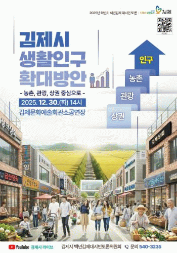 30일 실시하는 토론회 역시 26일까지 김제시민을 대상으로 실시한 사전설문을 통해 다양한 의견을 수렴하고 현장에서 시 농촌, 관광, 상권을 담당하고 있는 부서의 장이 패널로 나온 가운데 사전설문에서 나온 의견과 현장에 참여한 시민들의 아이디어를 중심으로 열띤 토론의 장이 펼쳐진다.