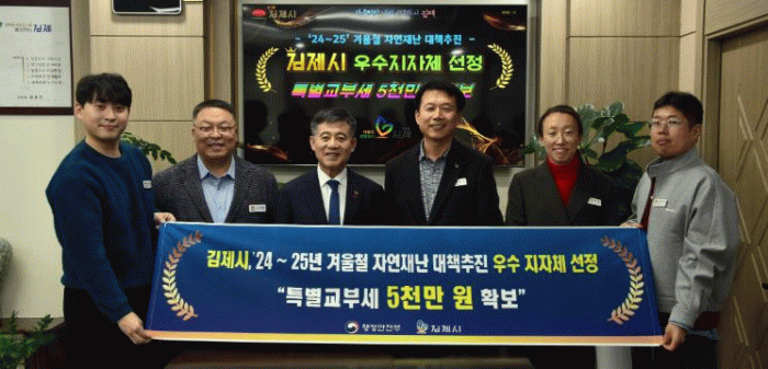 정성주 김제시장은 “이번 성과는 겨울철 자연재난에 대비해 선제적으로 대응한 결과이자, 현장에서 묵묵히 역할을 다해준 지역자율방재단과 관계 공무원들의 노력이 만들어낸 결실”이라며, “앞으로도 유관기관과 긴밀히 협력하여 대설과 한파 등 겨울철 자연재난에 철저히 대비해 김제시민의 생명과 재산을 지키는 데 최선을 다하겠다”고 말했다.