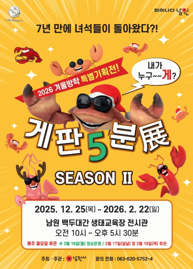 남원시 관계자는 “올겨울 백두대간 생태교육장을 방문하는 손님들이 이번 특별기획전을 통해 우리 시가 제공한 풍성한 볼거리와 체험거리를 신나게, 즐겁게, 재밌게 즐기셨으면 좋겠다.”라고 말했다.