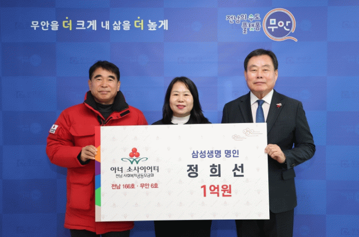 한편, 아너 소사이어티(Honor Society)는 사회복지공동모금회가 운영하는 1억 원 이상을 기부했거나 5년 이내 기부 약정한 개인 고액 기부자들의 모임으로, 무안군은 지금까지 총 5명의 아너 회원을 배출했으며, 이번 정희선 삼성생명 명인의 6호 회원 가입은 관내 취약계층과 사회복지시설의 든든한 희망나눔의 기반이 될 것으로 기대되고 있다.