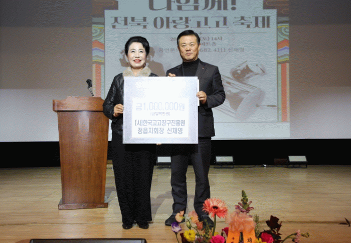 사단법인 한국고고장구진흥원 정읍지회의 신채영 지회장은 지난 27일 연지아트홀 공연 현장에서 장학금 100만원을 기탁했다.