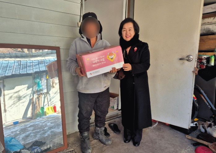 위수미 센터장이 직접 어르신 가정을 방문해 혹한기 대비 식생활용품 및 건강기능식품을 전달하며 안부를 살피고 따뜻한 마음을 더했다.