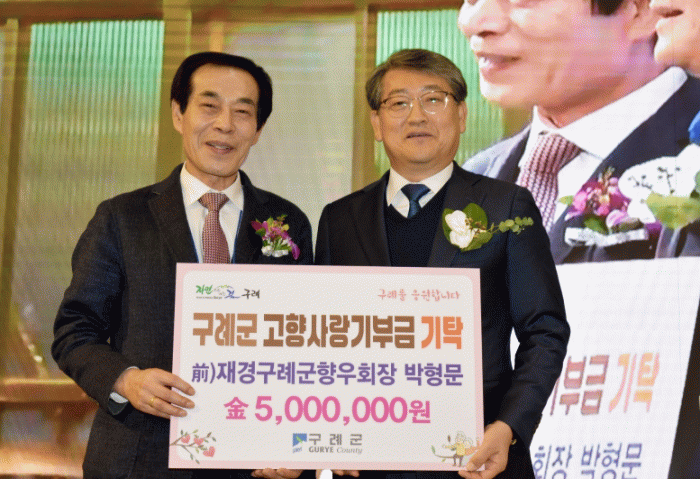 박형문 회장은 지난 2023년 고향사랑기부금 500만원 기부, 구례장학회 장학금 출연 등 남다른 기부 행보로 고향사랑을 몸소 실천하고 있다.