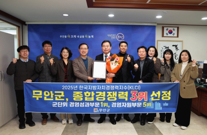 2022년 14위, 2023년 8위, 2024년 5위, 2025년 3위로 경쟁력 지수가 4년 연속으로 꾸준히 상승하며, 무안군은 지속적인 역량 강화로 한층 더 높아진 지역 경쟁력을 입증했다.