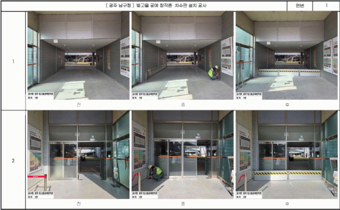 기존 차수판 설치 지원사업(최대 300만원)으로는 설치비를 감당하기 어려웠던 대형 사업장 3곳에는 1000만원을 추가 지원해 차수판 설치를 마쳤다. 이는 재난 재발 방지를 위해 현장의 필요성을 반영해 마련한 지원책이다.