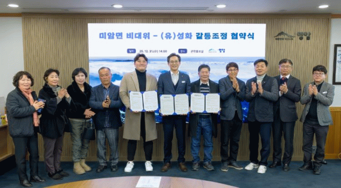우승희 영암군수는 “해묵은 갈등을 주민과 기업이 한자리에 앉아 상생협력으로 해소했다. 서로 이해하며 한발씩 양보한 주민과 기업에 감사드리고, 갈등조정위원회를 활성화해서 다양한 지역의 문제를 협의로 풀어나가게 하겠다”고 전했다.