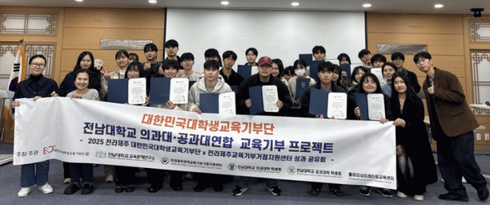 류지헌 전남대학교 교육문제연구소장은 “이번 성과공유회는 대학생 교육기부자들의 실천 경험을 돌아보고 서로의 성장을 나누는 의미 있는 자리였다”며 “앞으로도 대학생 교육기부단과의 긴밀한 협력을 통해 전라·제주권역 교육기부 활동이 지속적으로 확산될 수 있도록 적극 지원하겠다”고 밝혔다.