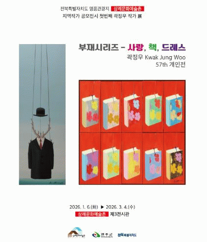 ‘부재시리즈 – 사랑, 책, 드레스’ 전시는 오는 3월 4일까지 삼례문화예술촌 제3전시관에서 관람할 수 있으며, 자세한 사항은 삼례문화예술촌으로 문의하면 된다.