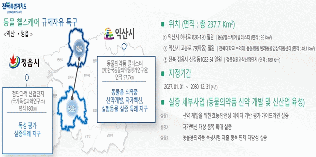 특구계획(안)은 1월 8일부터 2월 6일까지 전북특별자치도청 동물방역과에서 열람할 수 있으며, 공청회는 1월 12일 오전 10시 전북테크노파크 2층 대강당에서 개최된다. 지역 주민과 관련 기업, 이해관계자 누구나 참석해 의견을 낼 수 있다.