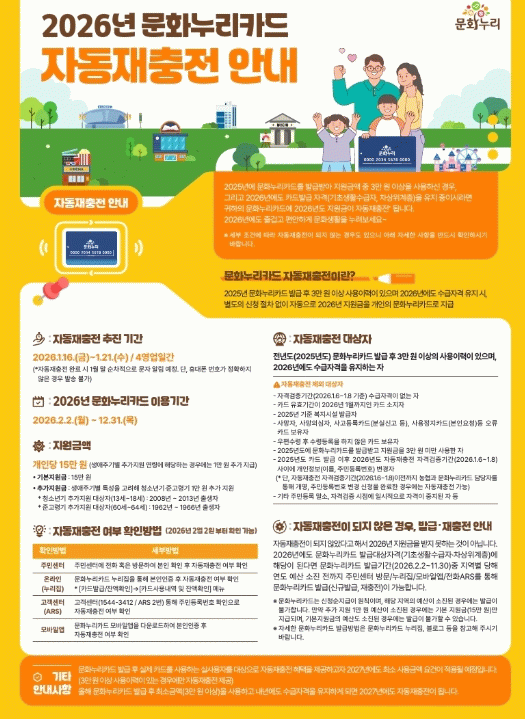 문화누리카드 이용 기간은 2026년 2월 2일부터 12월 31일까지다.