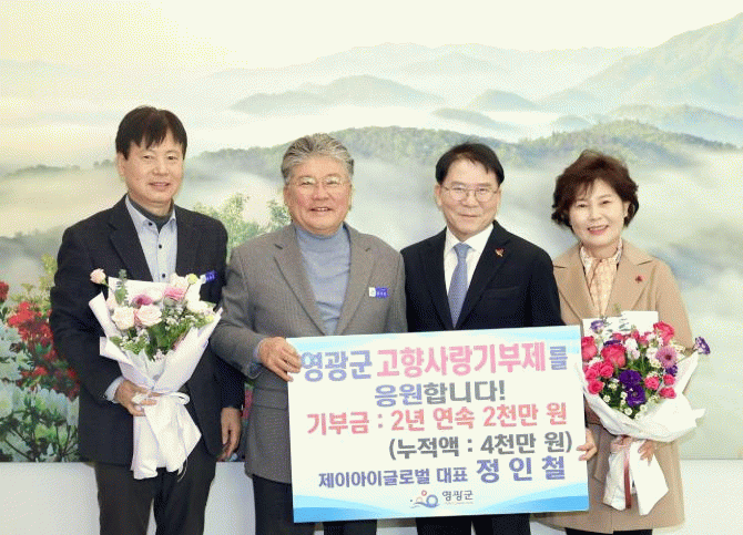 정인철 대표는 “태어나고 자란 고향 영광이 지속적으로 발전하고, 군민 모두가 더 나은 삶을 누릴 수 있기를 바라는 마음에서 2년 연속 기부를 결정했다”라며, “앞으로도 고향과의 인연을 소중히 이어가며 지역사회에 도움이 되는 나눔을 실천하겠다”라고 말했다.