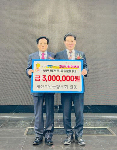 권익현 부안군수는 “향우회 이취임식이라는 뜻깊은 자리에서 고향사랑기부로 마음을 모아주신 재전부안군향우회 회원들께 깊이 감사드린다”며 “기부금은 군민이 체감할 수 있는 복지·환경·지역 활성화 사업에 소중히 활용하겠다”고 고마움을 전했다.