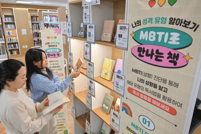 코너에는 MBTI 성격유형 검사지를 비치하고 유형별 추천 도서를 함께 진열해 이용자가 검사부터 도서 선택까지 한 공간에서 할 수 있도록 구성했다.