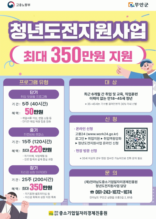 또한 전남일자리종합센터 무안지소(무안군 삼향읍 오룡3길 2)를 방문해 접수할 수도 있다.