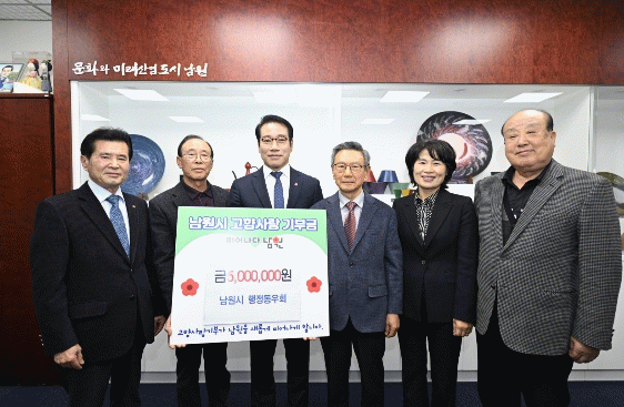 남원시 행정동우회는 행정공무원 퇴직자 모임으로 2023년부터 매년 자체적으로 성금 모으기 사업을 추진해 2024년과 2025년에 각각 500만원씩 이웃돕기성금을 전달하는 등, 지역사회에 따뜻한 온정을 나누는 데 앞장서고 있다.