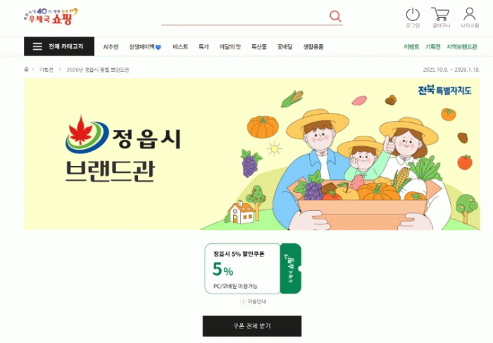 시 관계자는 “정읍 농특산물이 온라인 시장에서도 소비자가 믿고 찾는 대표 브랜드로 자리매김할 수 있도록 지원을 아끼지 않겠다”고 말했다.