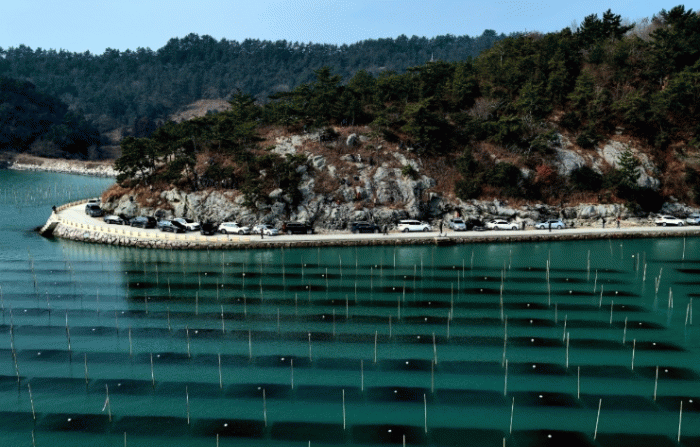 겨울이 되면 대덕읍 매생이 양식장에는 잔잔한 바다 위로 초록빛 매생이와 어민들의 채취 작업이 어우러져 특별한 어촌 풍경이 펼쳐진다.