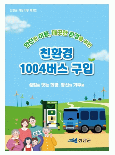 김대인 신안군수 권한대행은 “교통 소외지역 주민들의 발이 되어 온 1004버스가 친환경 버스로 전환되면 교통 복지가 한 단계 더 강화될 것”이라며, “지정기부사업 모금이 성공적으로 추진될 수 있도록 군민은 물론 전국 각지에 계신 향우 여러분과 기부자들의 많은 관심과 참여를 부탁드린다”라고 말했다.