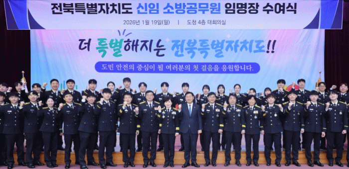 김관영 지사는 “신임 소방공무원 임용을 진심으로 축하한다”며 “소방은 위기의 순간 도민이 가장 먼저 찾는 조직인 만큼, 재난이 복합·다양해지는 상황에서 현장에 서는 한 사람 한 사람의 책임감과 안전 의식이 지역 안전을 좌우한다”고 말했다.
