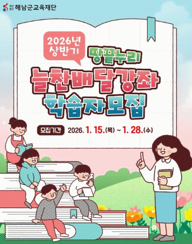 군 관계자는“땅끝누리 늘찬배달강좌는 군민이 생활 속에서 배움을 이어갈 수 있도록 지원하는 대표적인 평생학습 사업”이라며,“앞으로도 군민의 학습 수요를 적극 반영한 맞춤형 교육 운영을 통해 평생학습 기반을 지속적으로 강화해 나가겠다”고 밝혔다.