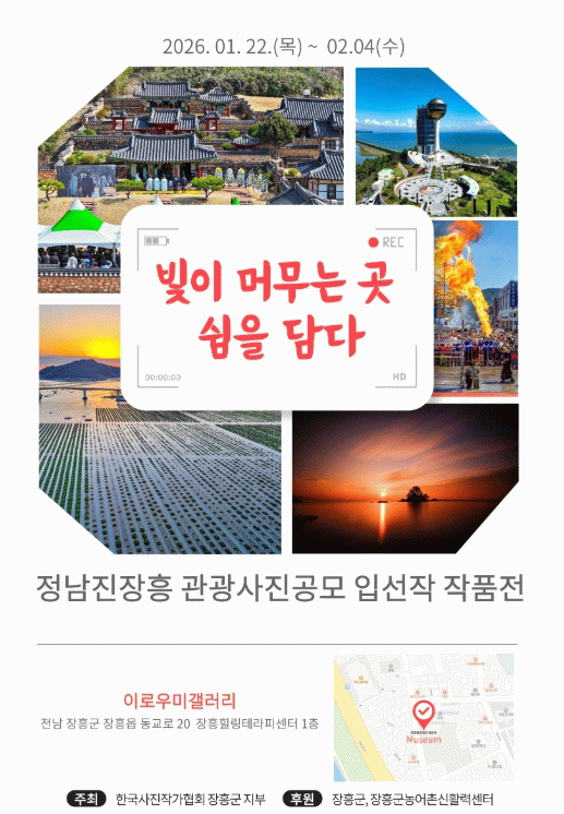 관람객들은 렌즈에 담긴 장흥의 빛과 여백을 통해 진정한 ‘쉼’의 가치를 경험할 것으로 기대된다.