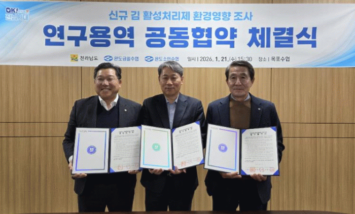 전창우 전남도 친환경수산과장은 “전남도와 수협이 협력해 개발한 신규 김 활성처리제는 김 양식 어업인의 40년 숙원을 해소할 수 있는 성과”라며 “고시 개정에 맞춰 신속히 현장에 보급해 어업인이 안심하고 사용하도록 적극 지원하겠다”고 말했다.