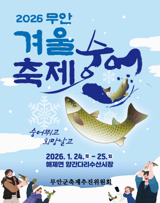 박문재 축제추진위원회 위원장은 “무안의 대표 수산물인 숭어를 직접 보고, 잡고, 맛볼 수 있도록 프로그램을 준비했다”며 “이번 축제가 지역 상권에 활력을 더하는 계기가 되길 바란다”고 말했다.