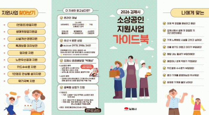 정성주 김제시장은 “국내외 경기 불안과 소비침체로 소상공인의 어려움이 지속되고 있다”며, “2026년에는 창업부터 위기 극복까지 전방위적 지원을 통해 지역경제 모세혈관인 소상공인의 경영 안정과 활력 회복을 적극 뒷받침 하겠다”고 말했다.