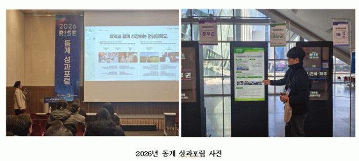 전남대학교 RISE 사업단은 지난 1월 20일부터 22일까지 사흘간 열린 2026 전국 대학 RISE 사업단 동계 성과포럼에서 'INNO UP 프로젝트: 광주형 미래라이프 커뮤니티 아카데미를 통한 DX 평생학습 생태계 구축' 사례를 발표해 직업·평생교육 분야 우수 성과 사례로 선정됐다고 밝혔다.