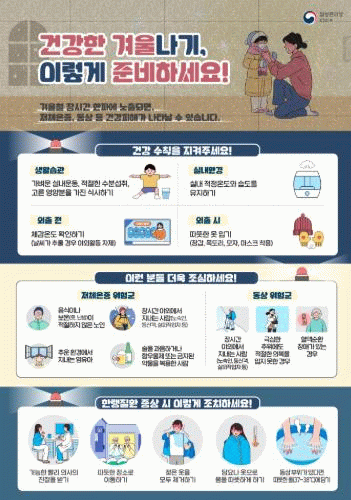 고령자와 만성질환자는 겨울철 추위에 취약한 만큼, 기온이 낮은 날에는 무리한 외출을 피하고 체온 유지에 각별히 신경 써야 한다.